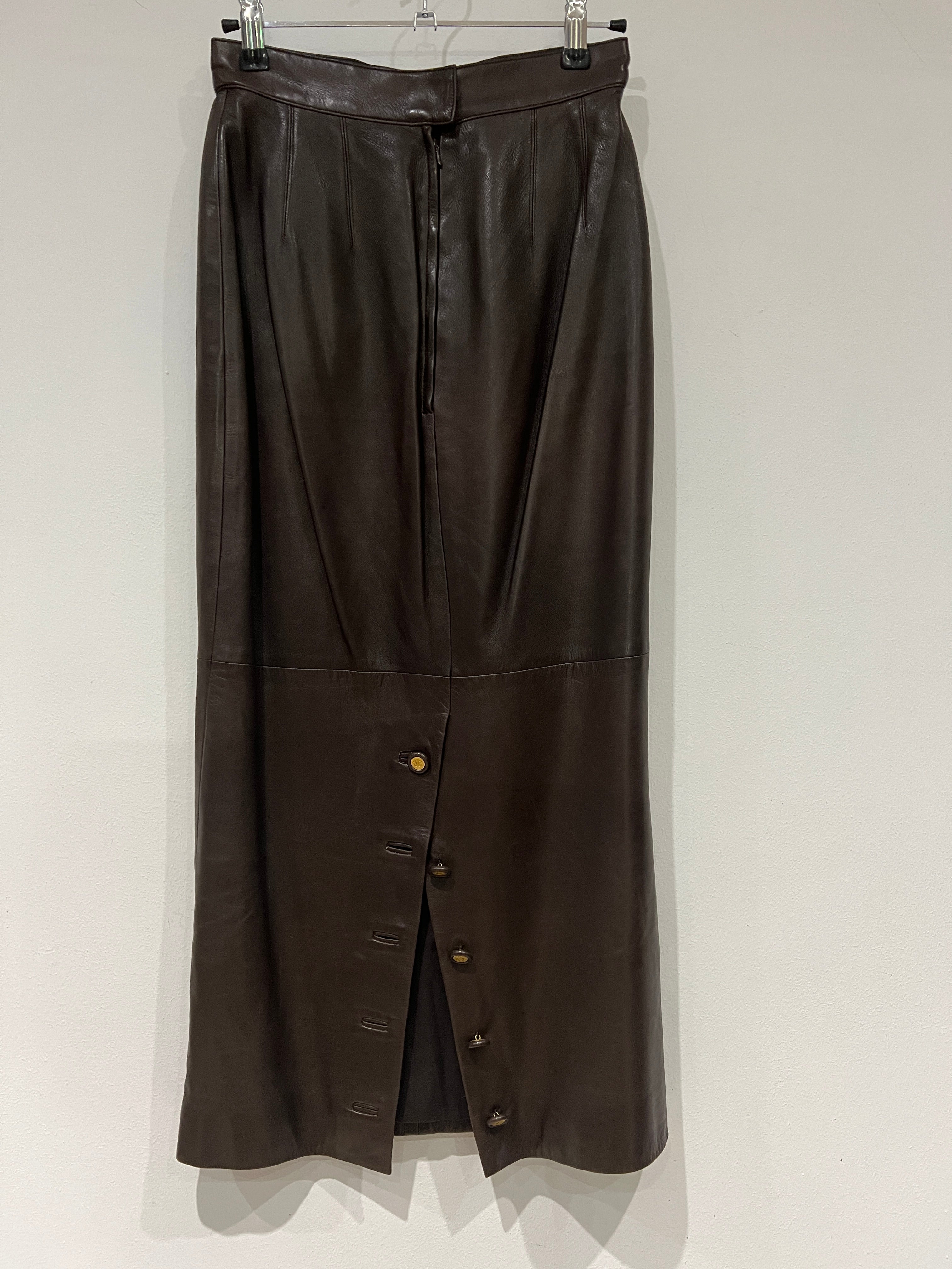 CHANEL Vintage leather midi pencil skirt