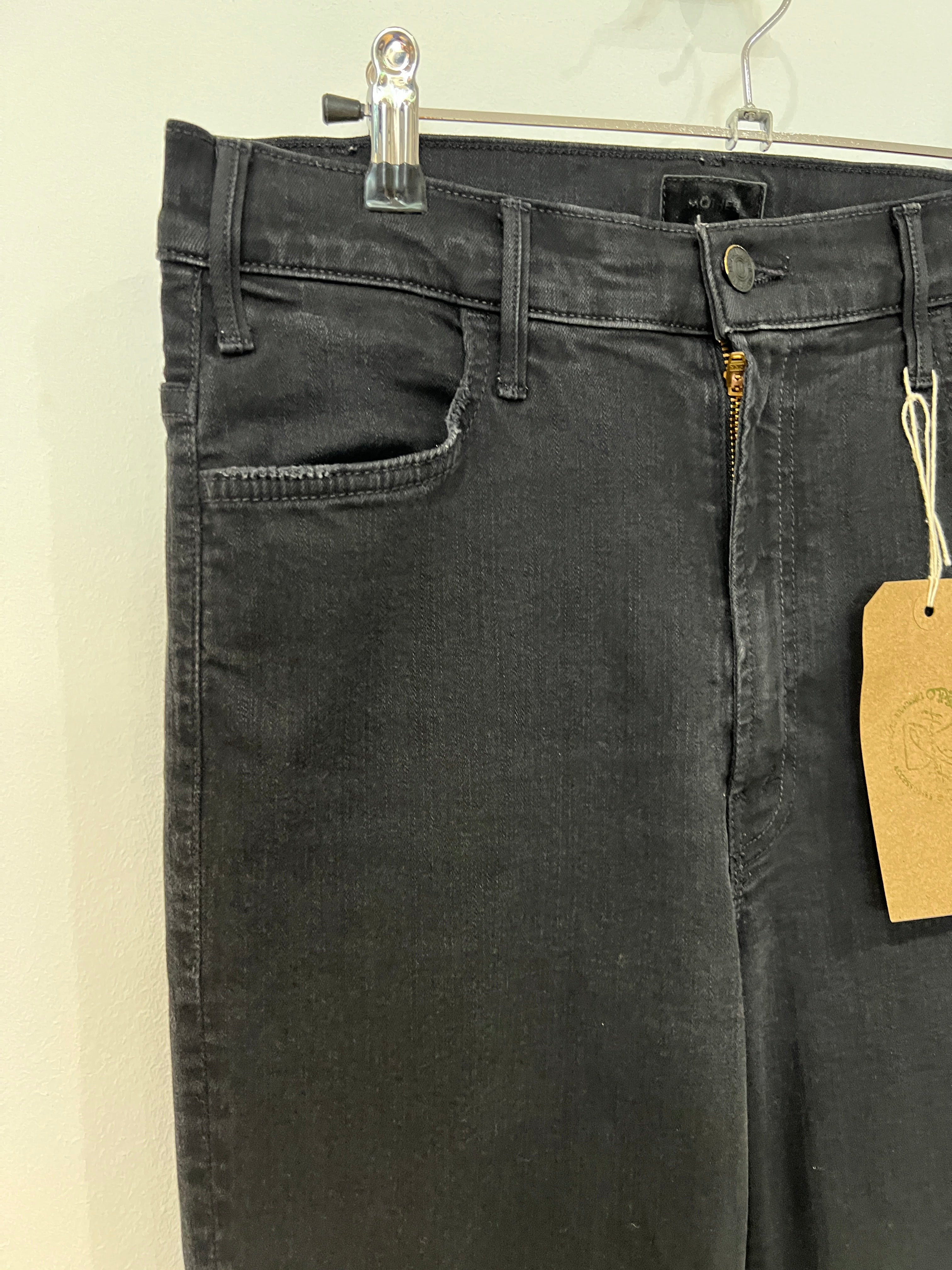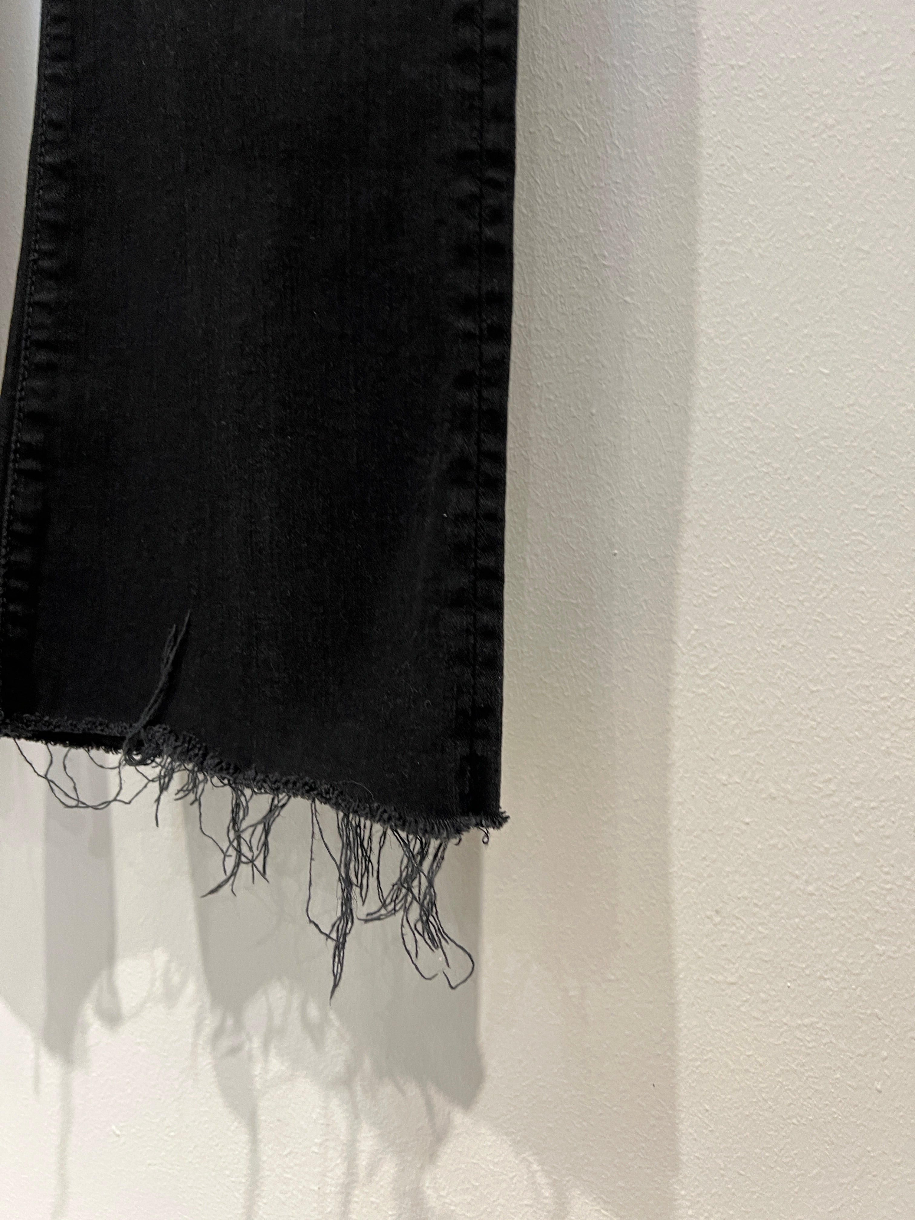 Black, cropped frayed hem