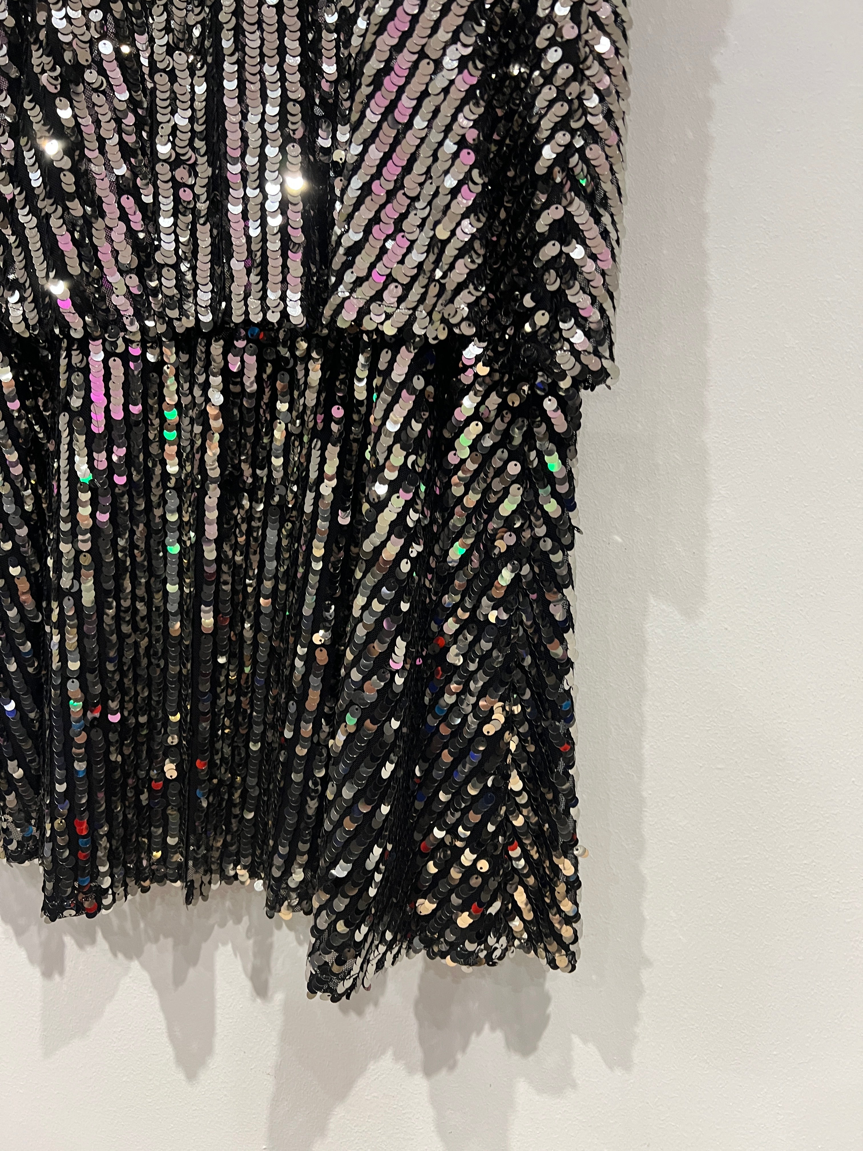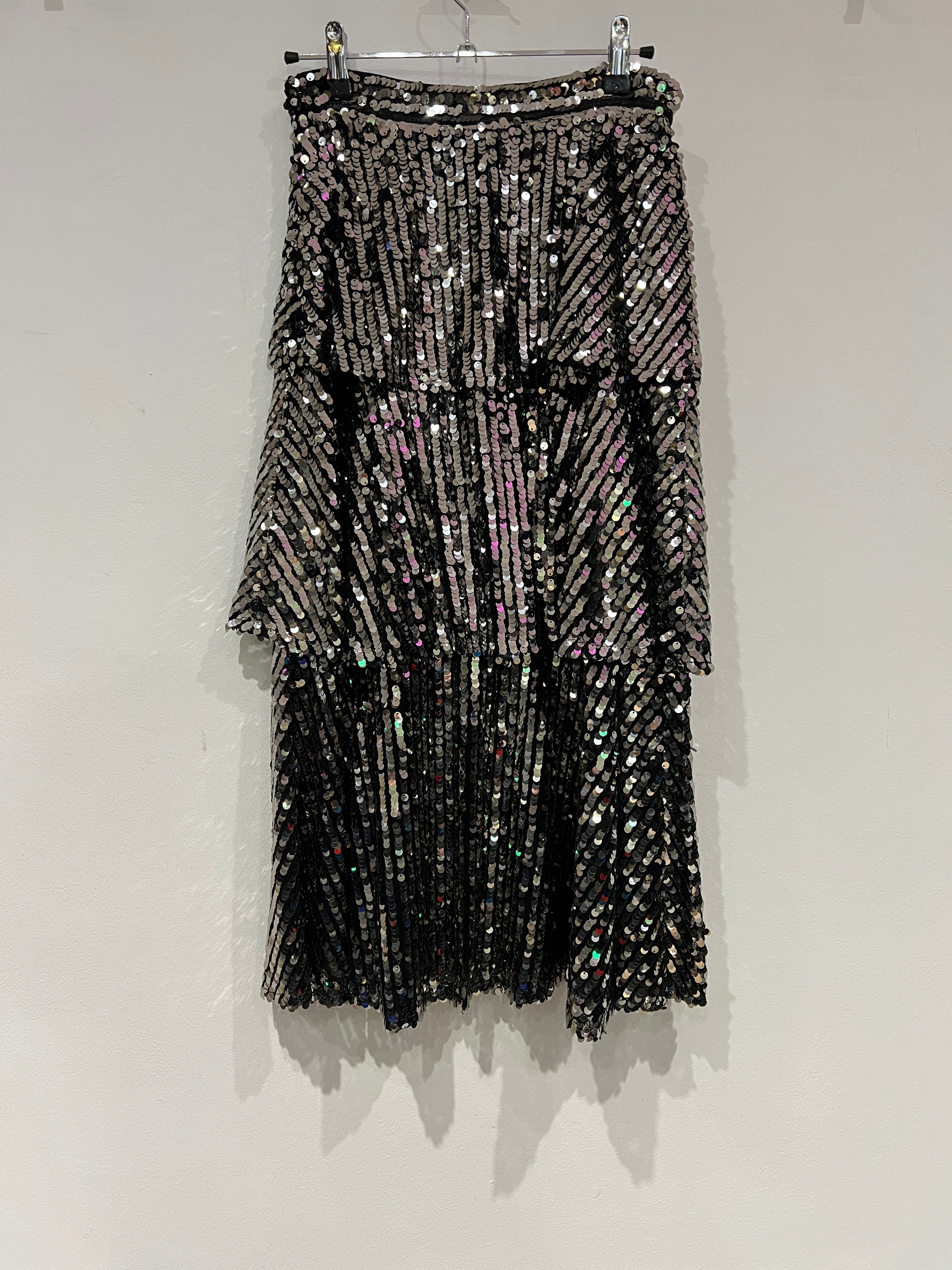 Gunmetal tiered sequin midi skirt
